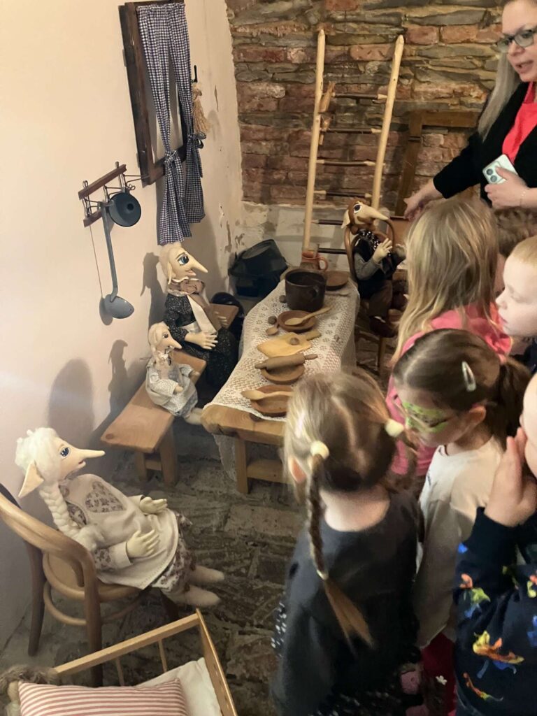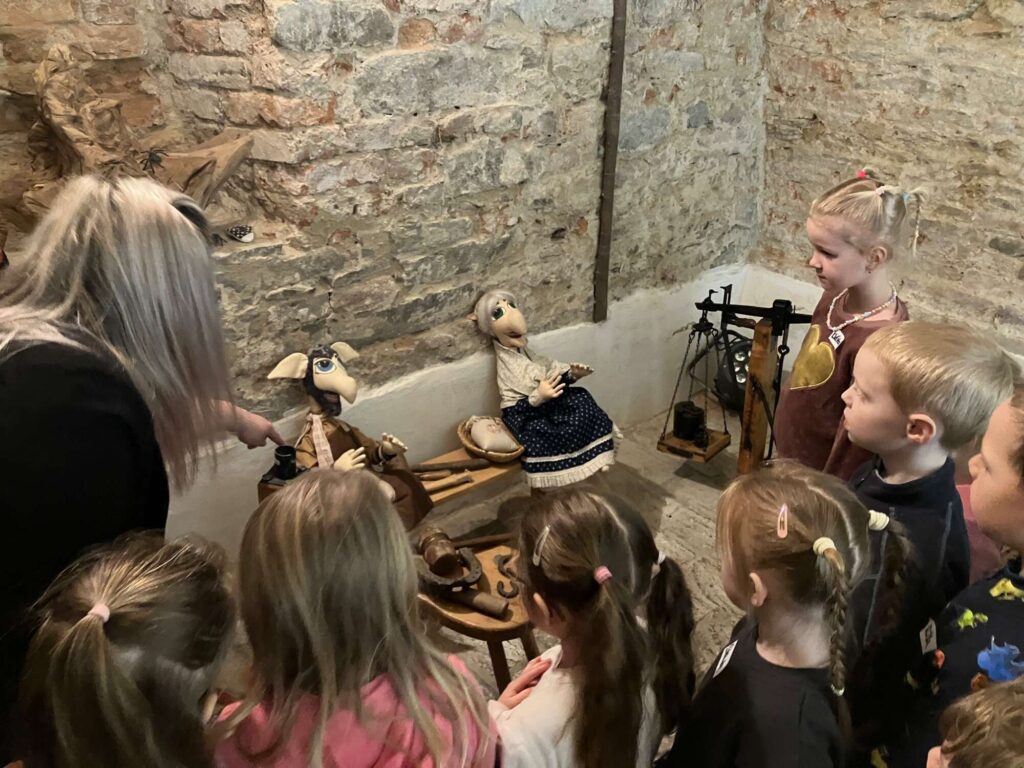 Dne 19. března jsme se s dětmi vypravily autobusem do nedalekého Bílovce. V muzeu pro nás paní Markéta měla připravený edukativní program „Zatoulané ovečky pastýře Metůdka.“ Po příchodu do muzea jsme nejprve posvačili. Následovala prohlídka sklepení, kde se děti seznámily s rodinou skřítků, ke kterým patřil i pastýř Metůdek. Viděly tam i některá starodávná povolání jako mlynář, kovář, kořenářka,… Po prozkoumání sklepení jsme vystoupali opatrně zpět nahoru. Cestou jsme hledali ztracené ovečky. Nahoře si děti s paní Markétou povídaly o tom, jak se vlna postupně z ovečky dostane až do obchodu, a co vše se z ní dá vytvořit. V praktické části si vyrobily vlastní ovečku.