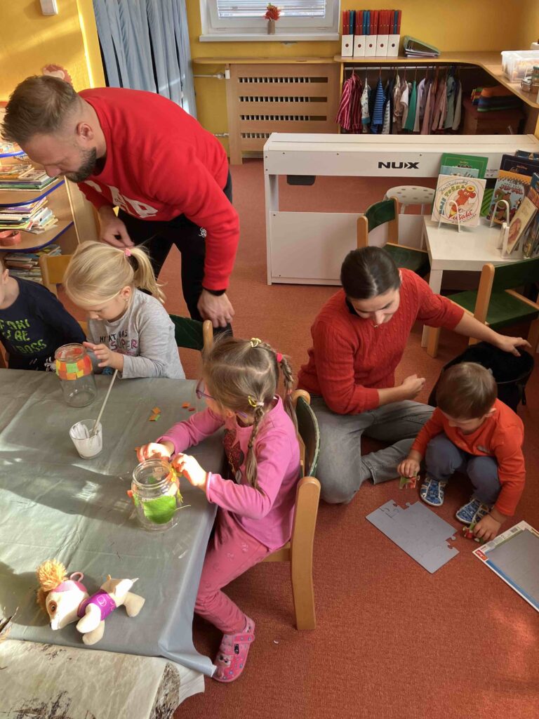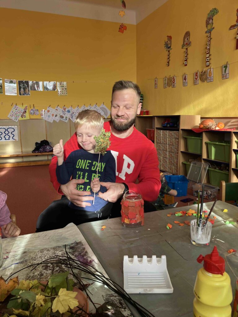 V třetím říjnovém týdnu se v naší mateřské škole uskutečnilo podzimní tvoření s rodiči. Děti si společně s rodiči mohli vytvořit zápich do květináče ozdobený přírodninami nebo lucerničku hned několika technikami. V jídelně pro ně bylo připraveno malé občerstvení. Doufáme, že jste si společně strávený čas užili. Děkujeme za účast.