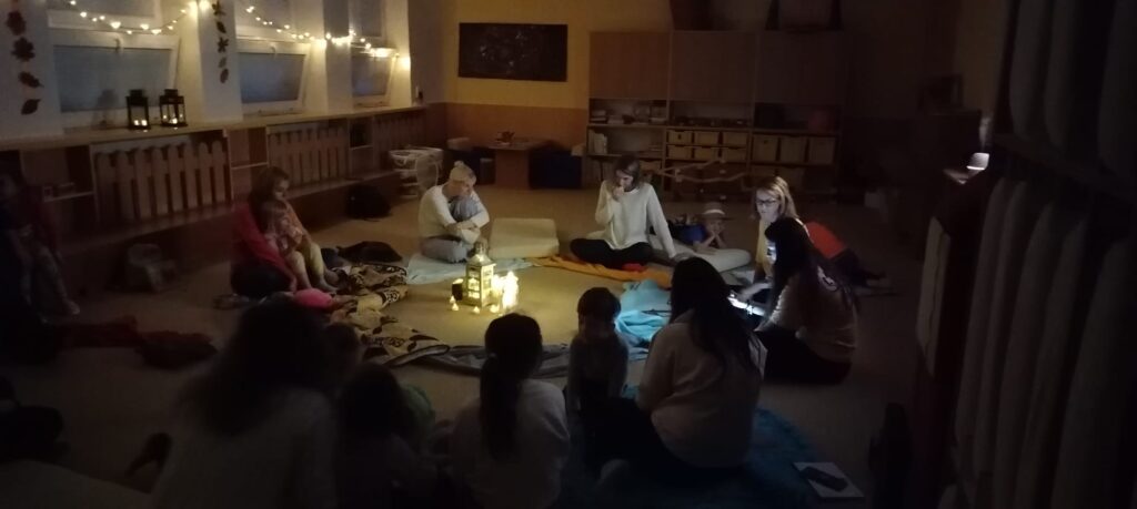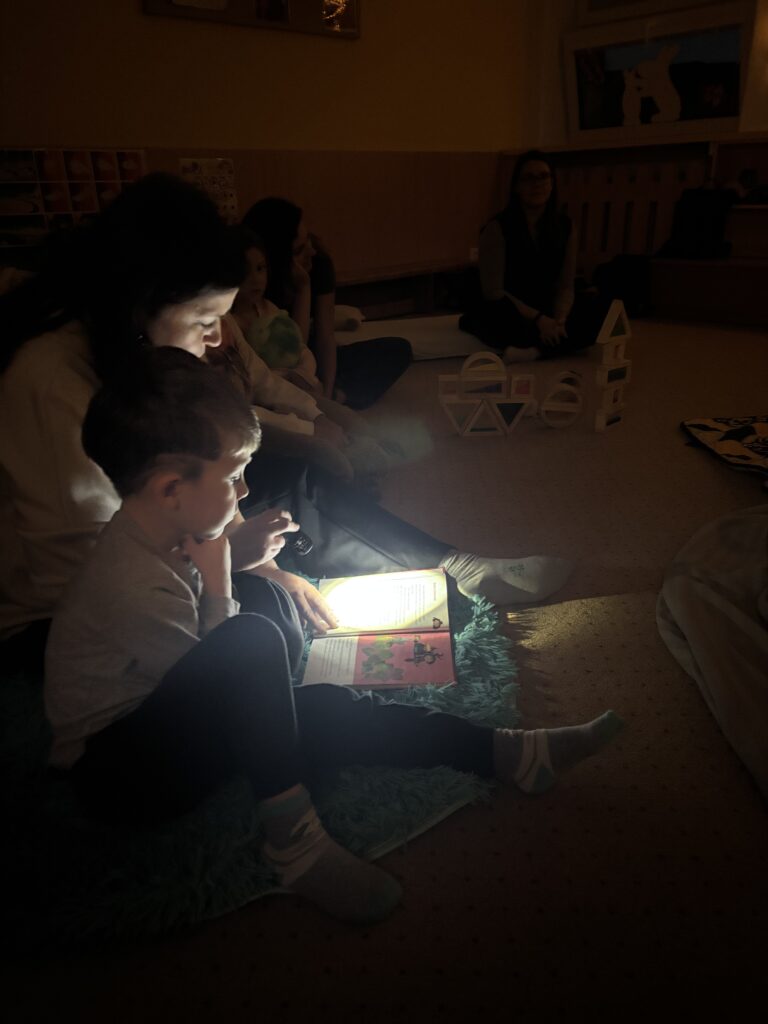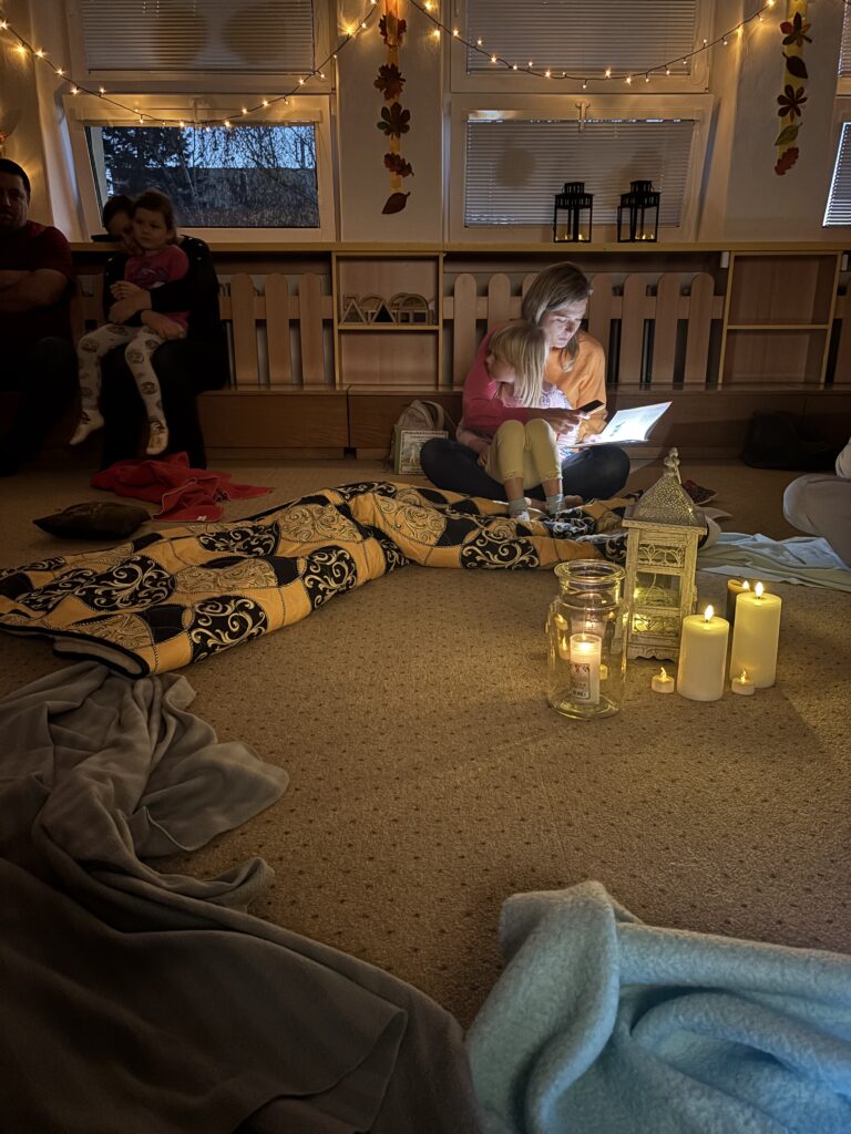 V naší školce jsme si společně s rodiči užili příjemné čtení při svíčkách dne 6.11.2025. Atmosféru jsme navodili tlumenným světlem a světýlkami či el. svíčkami, které vytvořily kouzelnou a klidnou náladu. Do čtení vybrané knihy Malá čarodějnice se zapojili také odvážní rodiče. Děti se následně mohly podívat na krátkou kreslenou verzi pohádky.