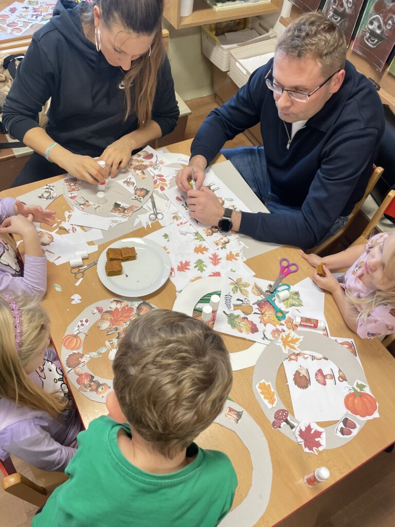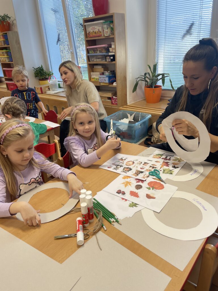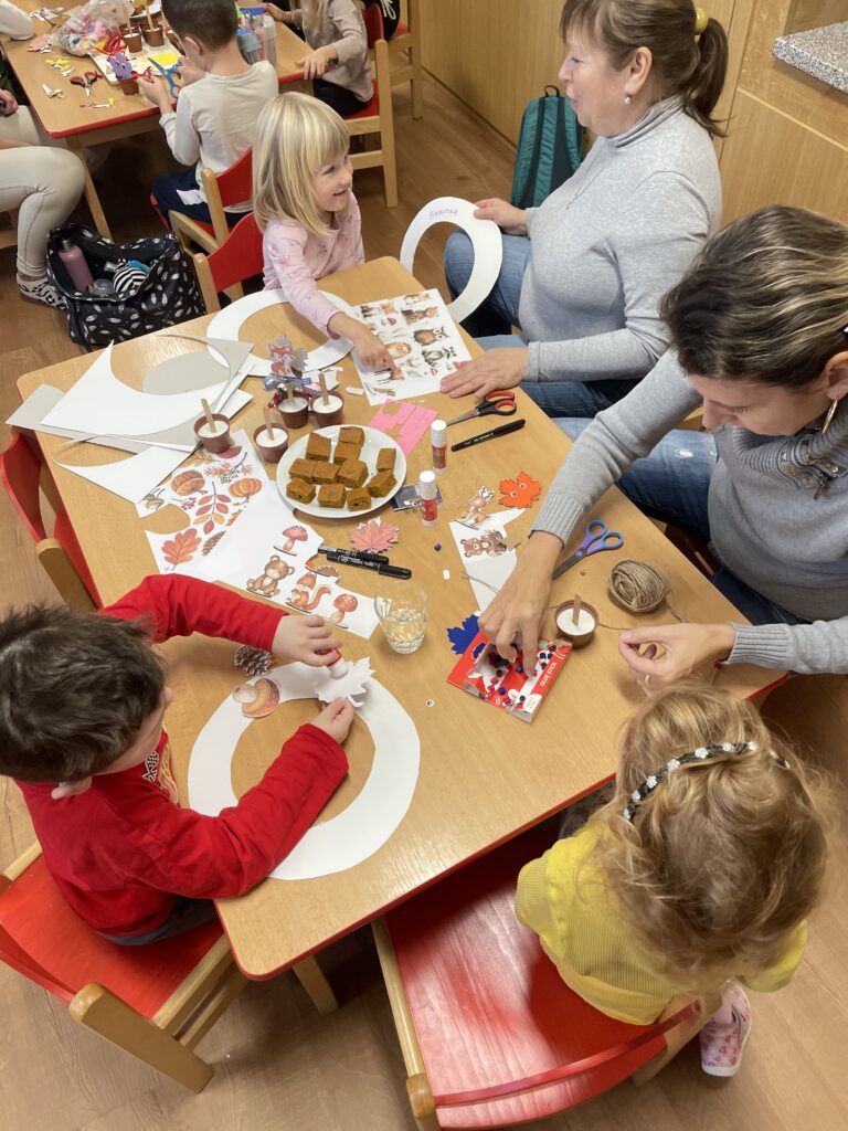 Odpoledne  4.11.2025 se ve školce neslo v duchu tvoření a podzimní pohody. Proběhly podzimní dílničky, kterých se zúčastnilo překvapivě mnoho dětí i rodičů. Společně si vyrobili papírový věnec a květináč s ozdobou a zápichem.