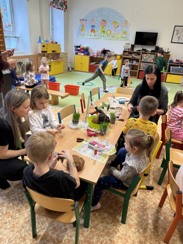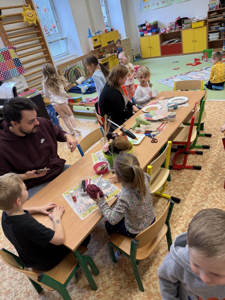 V mateřské škole proběhlo velikonoční tvořivé odpoledne, kterého se zúčastnily děti společně se svými rodiči. Společně vyráběli rozmanité velikonoční dekorace a výrobky, přičemž si užívali příjemnou a tvořivou atmosféru. Setkání přispělo k posílení vzájemné spolupráce a propojení rodiny se školním prostředím. Odpoledne se neslo v duchu hravosti, sdílení a radosti ze společně stráveného času a všichni si odnášeli nejen vlastnoručně vyrobené výrobky, ale i hezké zážitky.